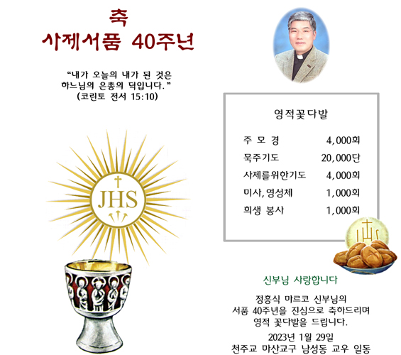 정흥식 마르코 신부님의 서품 40주년을 진심으로 축하드리며 영적 꽃다발을 드립니다.