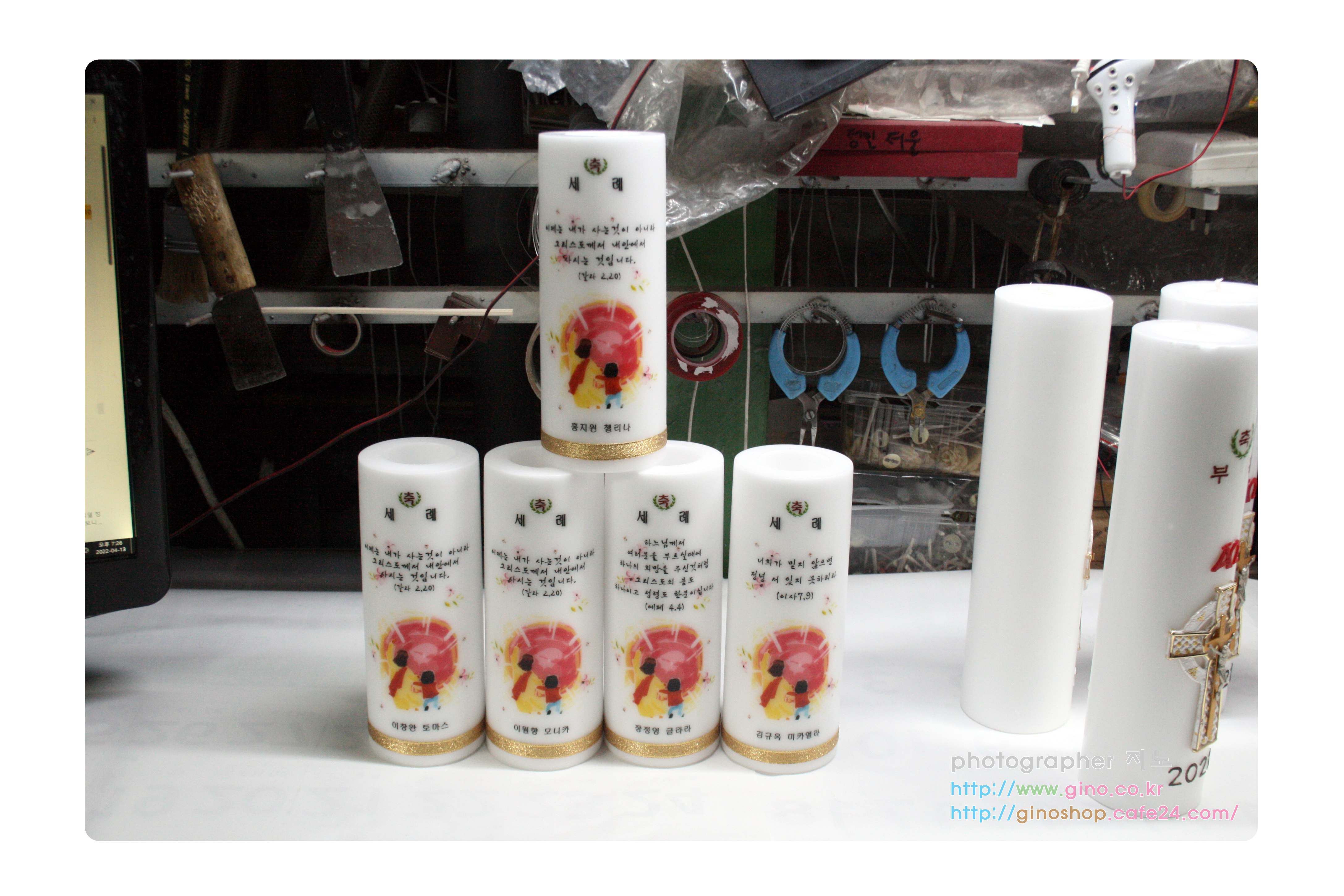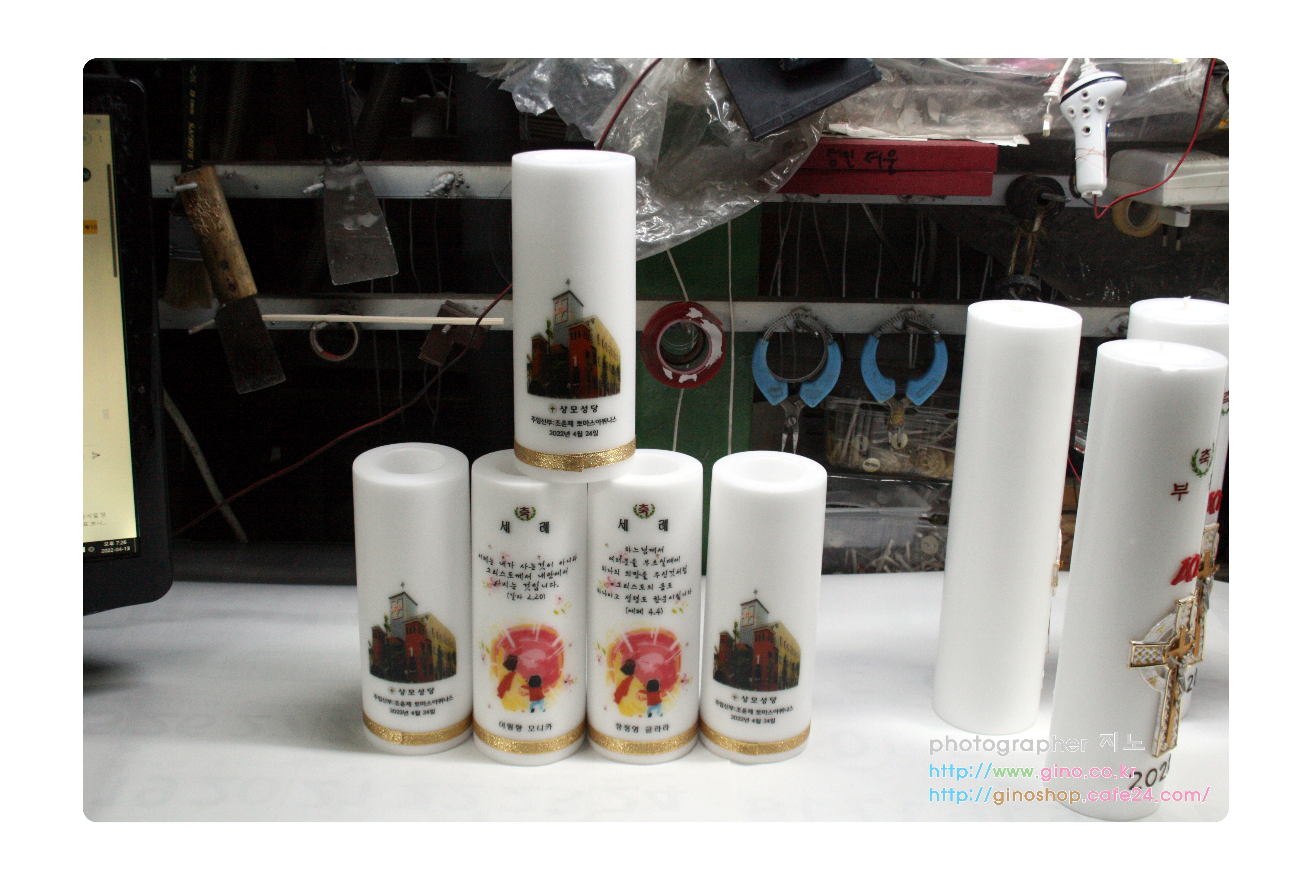 보라동성당에서 축세례 행사때 사용하기 위해서 주문 제작을 하신 양초 캔들 입니다.