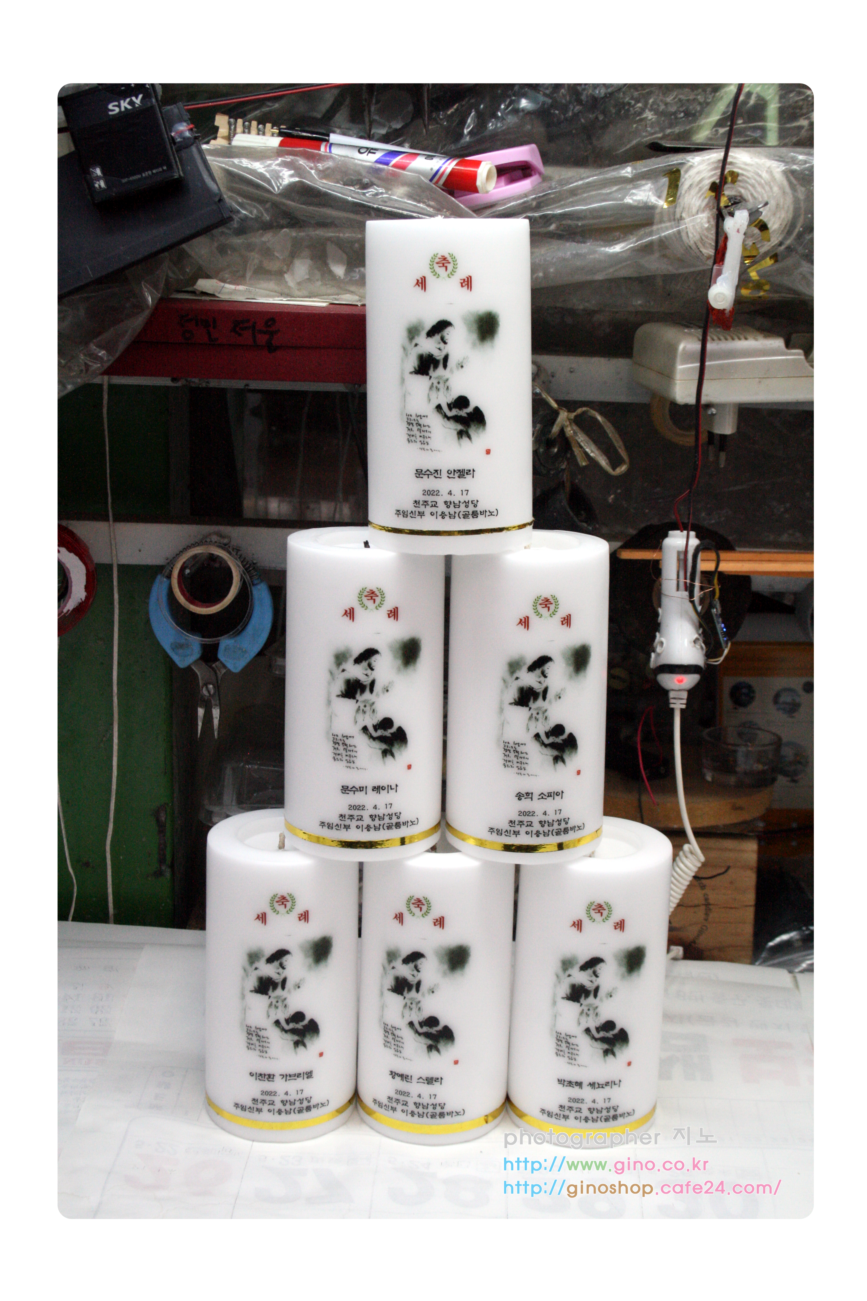 상모성당에서 축세례 행사때 사용하기 위해서 주문 제작을 하신 양초 캔들 입니다.