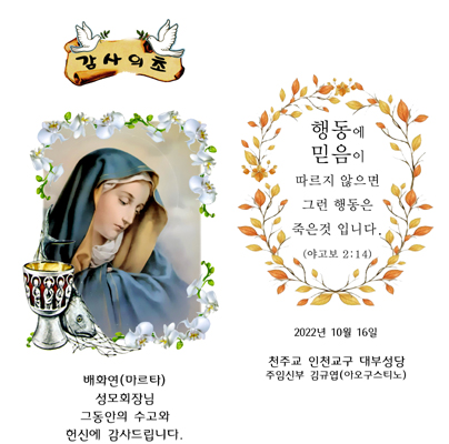 Posted at 2022. 10. 6. 19:10 | Posted in 축세례/축세례폼|