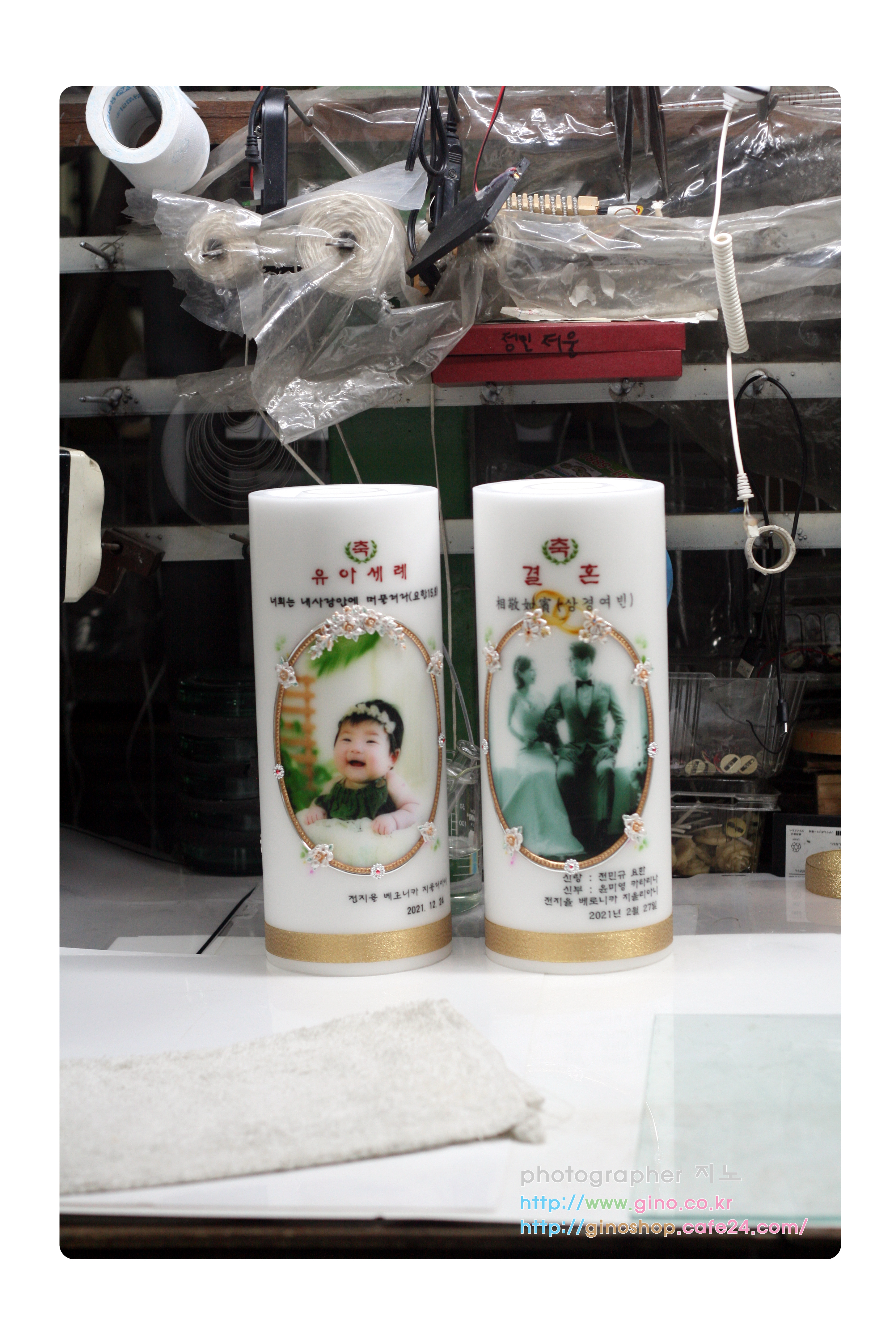 유아세례, 결혼 선물로 주문 제작을 하신 양초 캔들입니다.