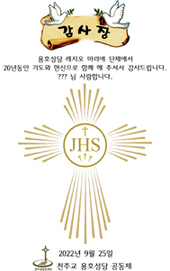 용호성당 설정 20주년 감사장 종이 초안용호성당 설정 20주년 감사장 종이 초안