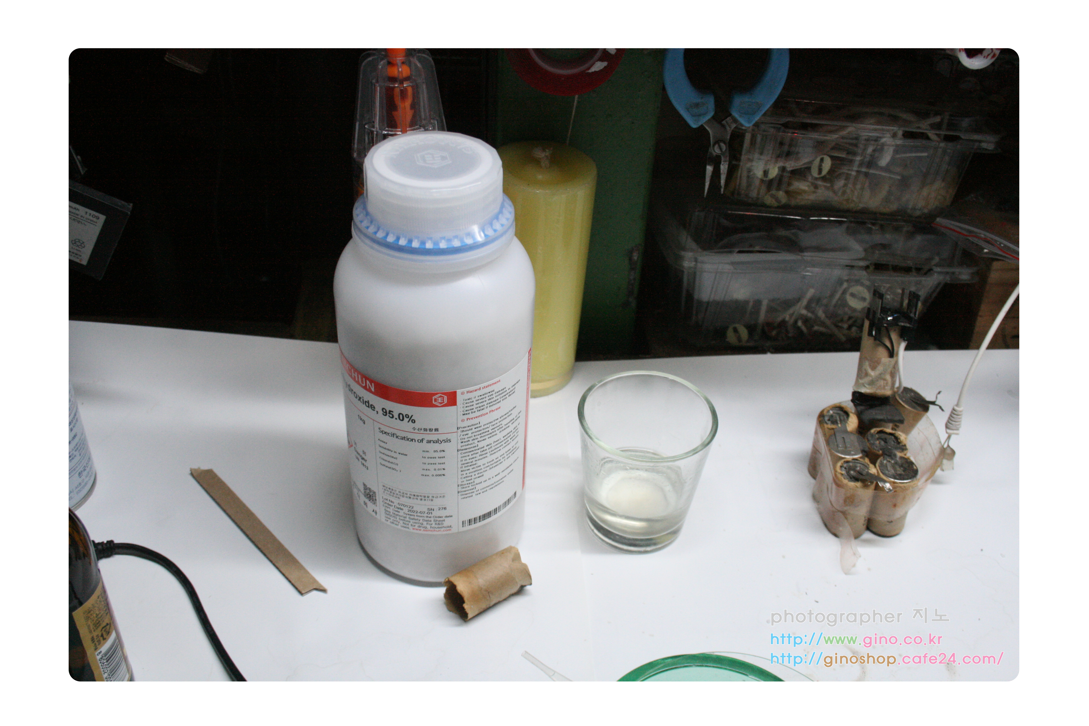 자료를 잘찾보니 니켈 수소 전지의 전해액으로는 KOH 수용액이 들어갑니다. 가성가리라고 불리는 독극물이라서 취급을 주의해서 사용을 해야 됩니다 필히 장갑을 착용을 해야 됩니다. 구입한 koh를 증류수와 혼합을 하여 비중을 맞추어 준비를 해두고. 그리고 니켈 배터리 위 뚜껑을 일명 뚜다라고 하여 니퍼를 활용하여 뚜껑을 개방을 시키을 시켜주었습니다. 한 4개 정도 개방을 하기 전에 테스터기로 전압을 측정을 해보니 50mv~200mv 정도로 미약한 전압만 측정이 되며 또한 뚜껑 위에는 흰색 가루 즉 전지 안에 전해액이 흘러 나와 말라버리고 부식된 흔적과 이 전부다 확인을 할수 있습니다. 뚜따를 하고 안을 보니 완전히 말라 있는 내부를 발견이 됩니다. 스포이드로 전해액을 부어 넣으니 어떤 전지는 바로 전압이 올라가는 증상을 확인을 할수 있엇고 어떤 전지는 미약하게 전압이 올라가 있는 것을 확인을 합니다. 그래서 가각 5분정도 충전을 시켜본 결과 어떤거는 1.2v 어떤거는 0.6v등등 다 충전이 되는것을 확인을 하였습니다. 좀더 테스트를 해봐야지 확실히 죽은 니켈 수소 전지를 재 활용할수 있을지를 판단할수 있을듯합니다. 이번 실험으로 전해액의 보충으로 사용못하는 전지 배터리도 왠만하면 다 살릴수 있을듯합니다. 좀더 테스트 해보고 확실히 내용으로 올려 보겠습니다.
