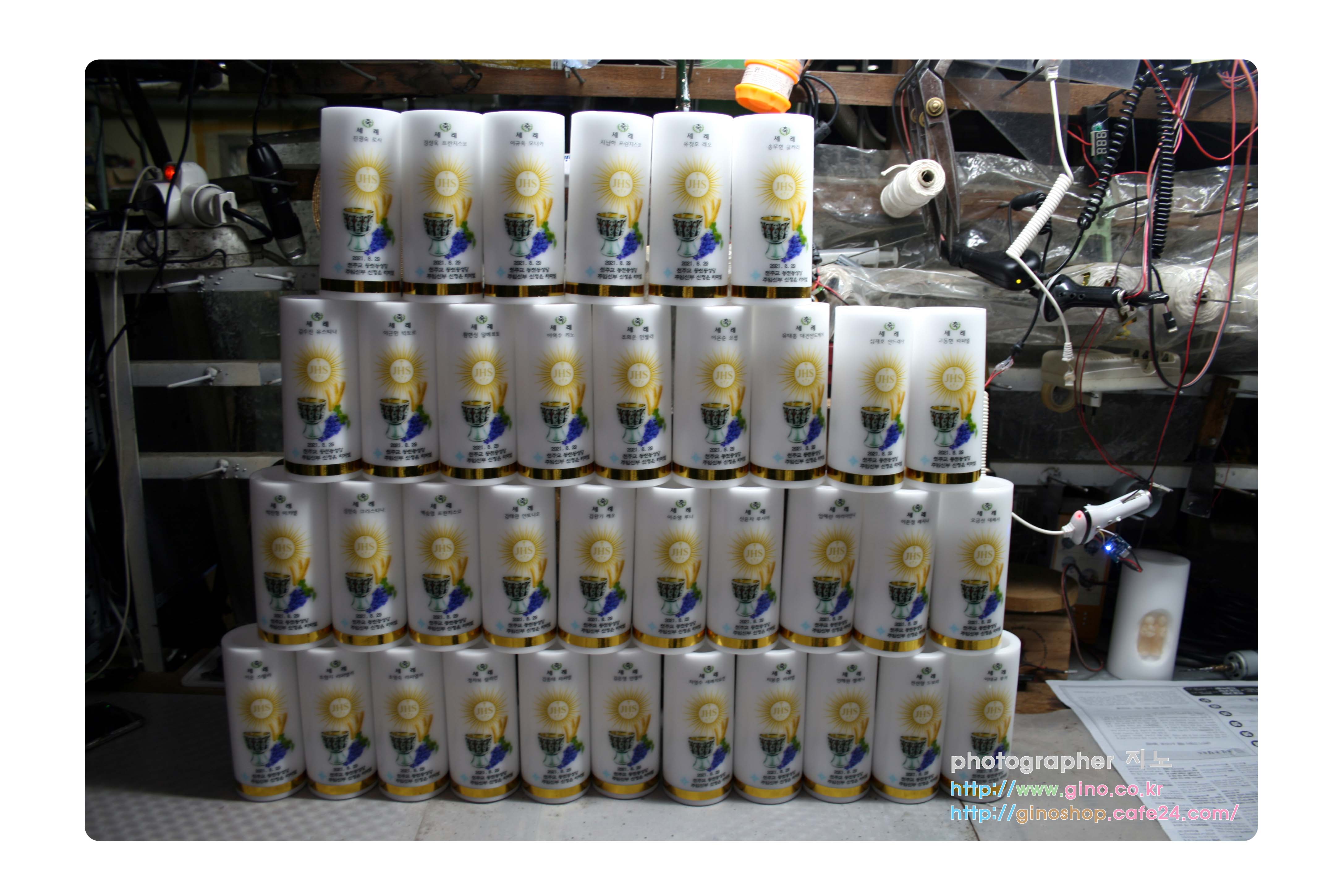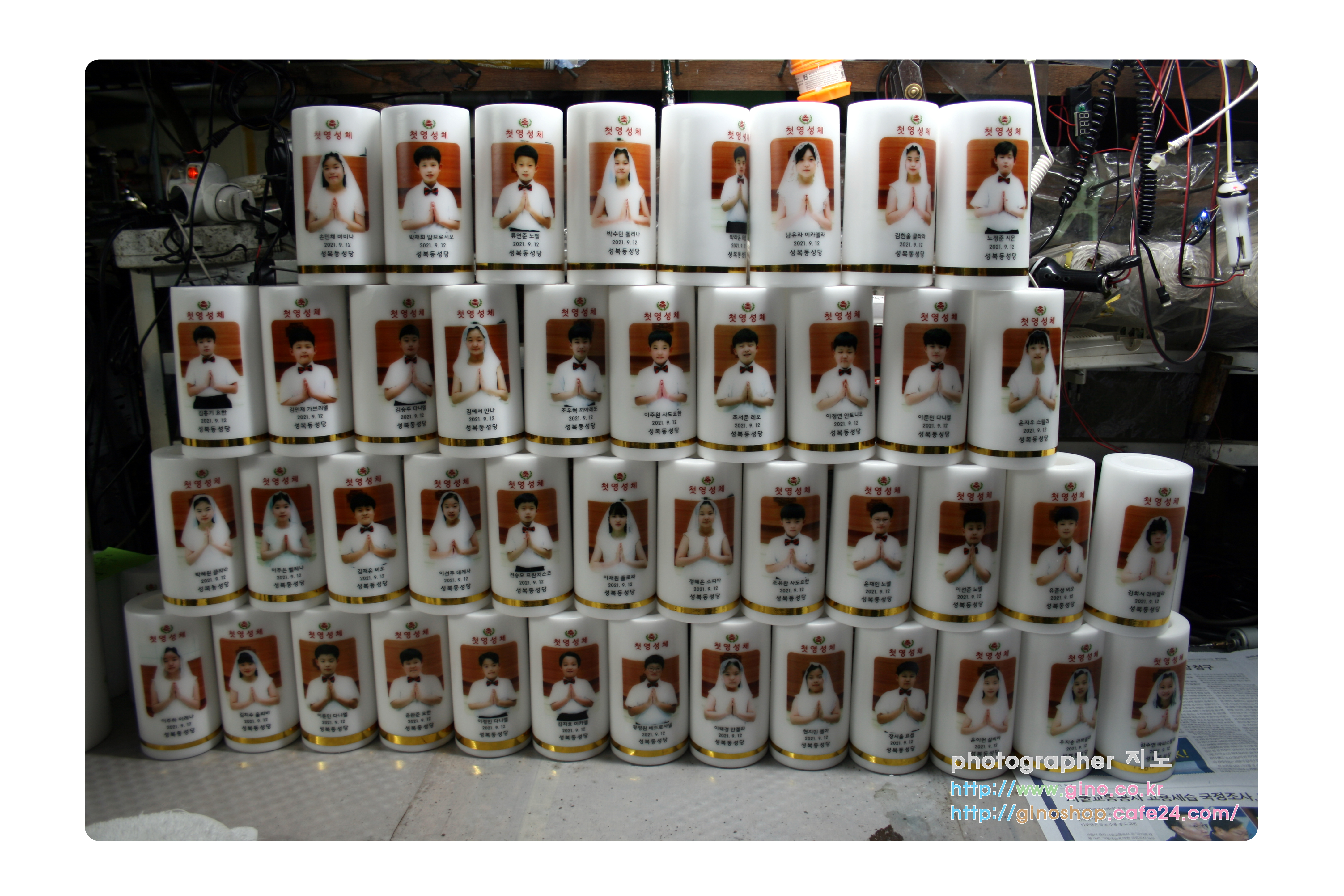 동천동성당에서 축세례 행사때 사용하기 위해서 개별 이름을 넣어서 주문 제작을 하신 양초 캔들 입니다.
