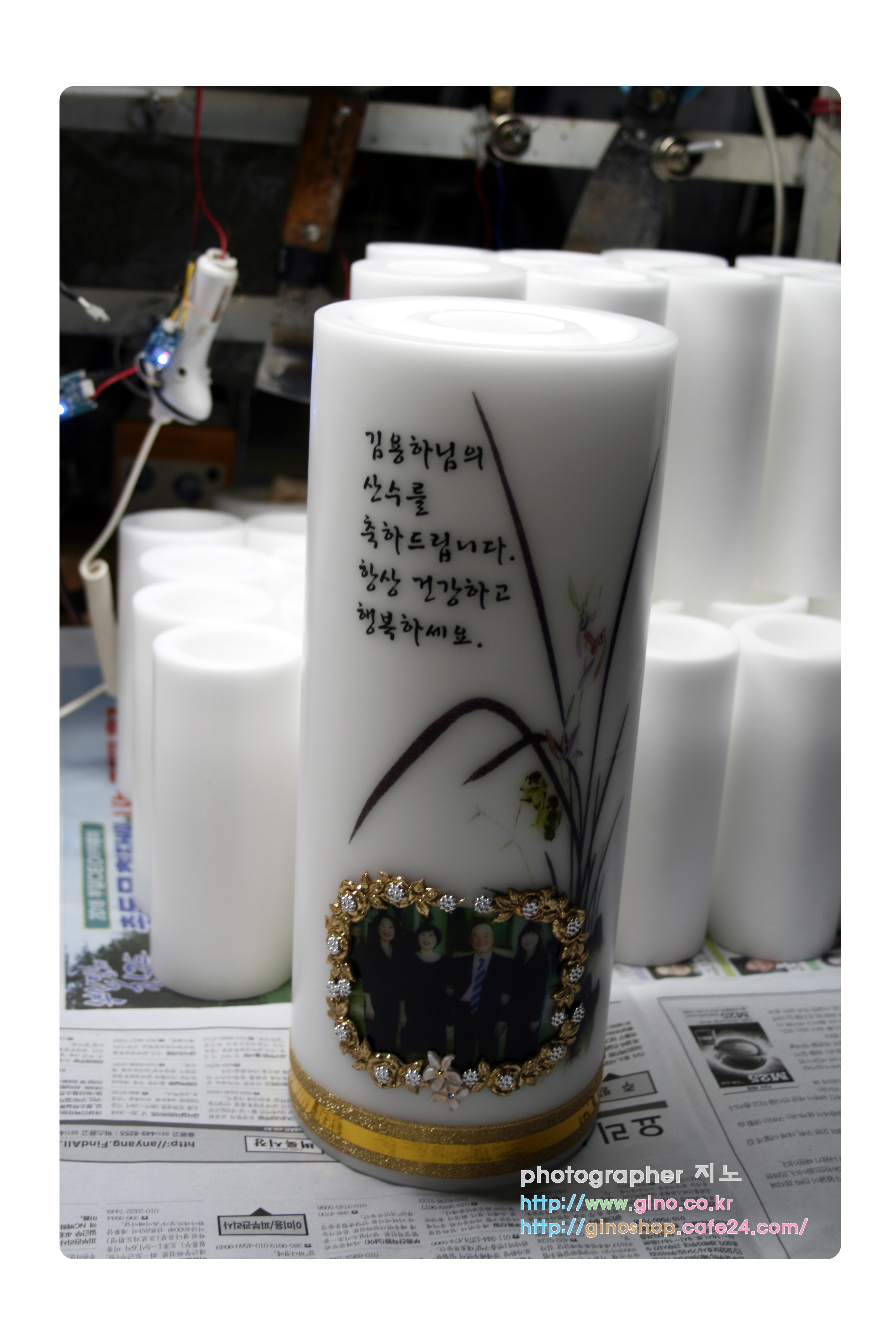 부모님 산수 축하 선물로 주문 제작을 하신 양초 캔들 입니다.