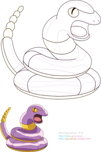 74탄에서 소개해드리는 색칠 소재는 포켓몬에서 나오는 아보라는 케릭으로 만들어서 시안입니다.