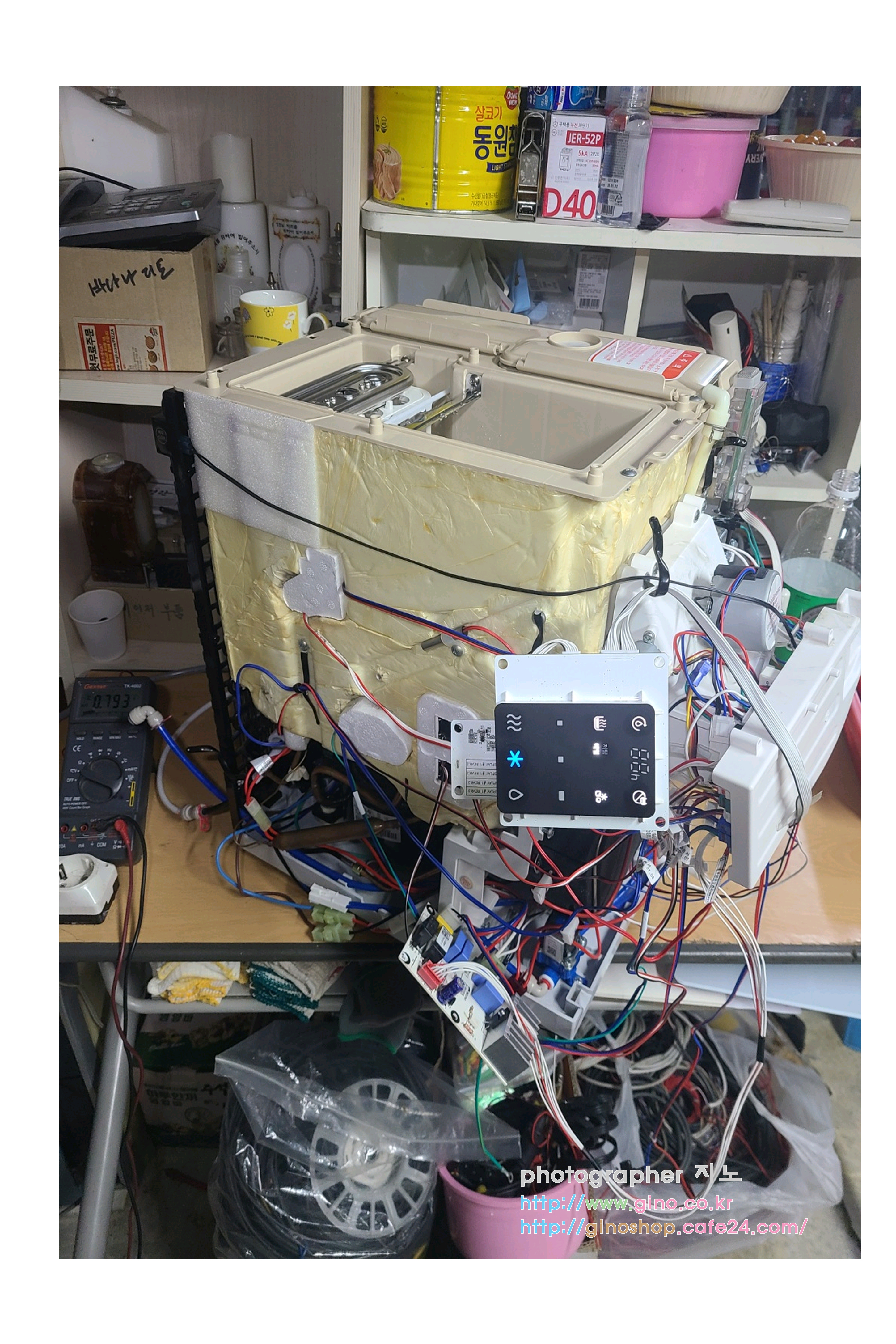 정수기의 겉 케이스를 분해후 하나씩 분해해 나갑니다. 기판의 상태를 보니 대략난감이네요 전소부위가 심해서 살짝 맨붕이 옵니다. 패턴을 잘 연결해 줄수 있을지도 의문이 듭니다. 해깔리지 않게 기판소켓에 연결된 명칭을 다시 프린트 해서 선에 각각 붙여서 표식을 해줍니다.그 다음 칫솔로 세척을 해주고 온수동 뒤에 파워 부분을 분해를 하여 테스트기로 tr부분과 옆에 선에 따로 빠져 있는 퓨즈 부분은 비프음으로 알수 있는 방법뿐로 고장 낮는지 테스트 해보니 이상이 없는듯합니다. 그럼 파워 부분 말고 다른 부분이 고장이 낮다라는 결론으로 옆에 보니 트랜스 부분도 있어 측정을 해봅니다 저항에 두고 1차측 2차측 테스트 해보니 1차 220 부분의 저항이 측정이 안됩니다. 동일한 규격의 트랜스가 있는지 국내 해외 구석 구석 뒤졌습니다. 와 어떻게 ac 21v 규격은 찾을수가 없네요. 청호나이스 세니타 모델의 비슷한 스팩의 제품이 있을줄 알았는데 절대 없습니다. 그래서 머리를 굴려 봅니다. 일단 이 트랜스가 고장이 낮는지 확실치가 않아서 저희가 가지고 있는 가변 트랜스가 있습니다. 21v로 맞추고 연결을 하니 오 전원이 들어옵니다. 일단 요기까지 작동 여부를 확인을 하고 기판 부분의 전소된 소자를 찾아서 그 부품을 주문을 넣고 패턴이 어떻게 될지 자세히 보니 옆 부분과 동일한 구성의 패턴이라 다행이 잘 연결할수 있지 않을까 생각을 해봅니다.?