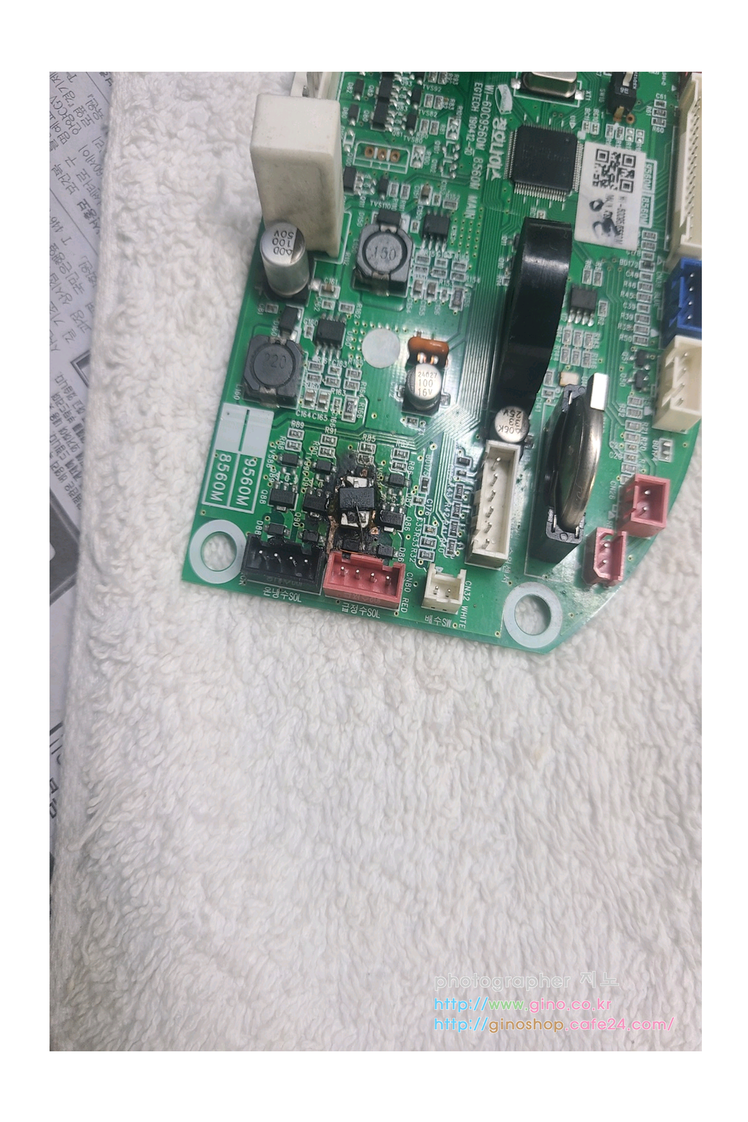 잘 사용하던중 아침에 고약한 회로 타는 냄새가 나는것을 찾다보니 정수기에 주변에서 냄새를 감지를 하게 됩니다. 그런데 전원이 들어 오지를 않습니다. 전기 코드가 빠져 있나 생각했지만, 소켓에 잘 끼워져 있지만, 상태는 깜깜 무소식 공장으로 가지고 와서 원인이 무었인지를 겉에 부터 있는 케이스 부터 전부 분해 한단계씩 진행을 해주었습니다. 그리고 문제의 기판을 보니 가관이네요 부품이 전소가 되어 그부분에서 심한 냄새가 발생을 한것을 발견을 하고 세척과 말리고 다시 결합후 전원을 인가를 하였지만, 역시 전원도 안들어오고 깜깜 무소식입니다.그래서 회로가 불타버린 원인이 분명이 있다고 생각을 해서 연결된 주변 부품을 관촬을 해본 결과 이 부품으로 인해 고장 원인이지 않을까 유추가 됩니다. 솔레노이드밸브가 부풀어 있네요 정수기에 다른 솔레노이드를 보니 정품 스티커가 붙어져 있는데 이거는 아무것도 없습니다. 앞전에 우리가 사기 전에도 이 부품을 교체 하지 않았을까 생각을 해봅니다. 근데 전원이 안들어와서 대략난감입니다. 그래서 청호나이스 as센터에 혹여나 메인보드와 이 솔레노이드밸브를 구매할수 있을지 연락을 했지만, 안되고 as기사가 가서 원인진단과 수리를 해야 된다고 합니다. 그럼 비용은 대략 얼마입니까 문의를 해보니 출장비와 가서 진단을 해봐야지 금액이 나온다는 말을 듣고 일단 자가 수리쪽으로 방향을 잡고 도전기에 들어가 봅니다. 일단 하다보면 어떻게든 되지 않겠습니까?안되면 as신청해서 수리를 해야겠습니다.