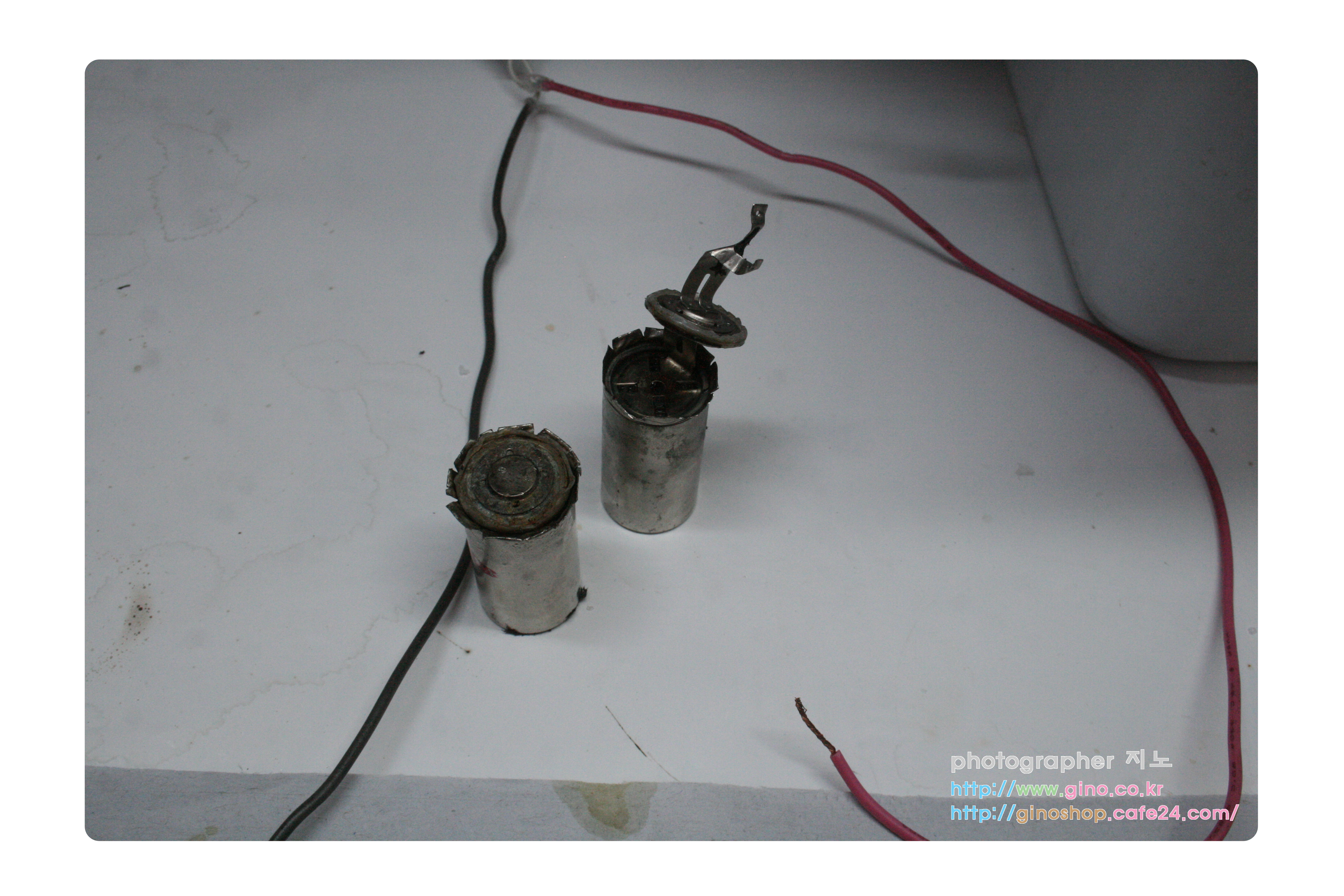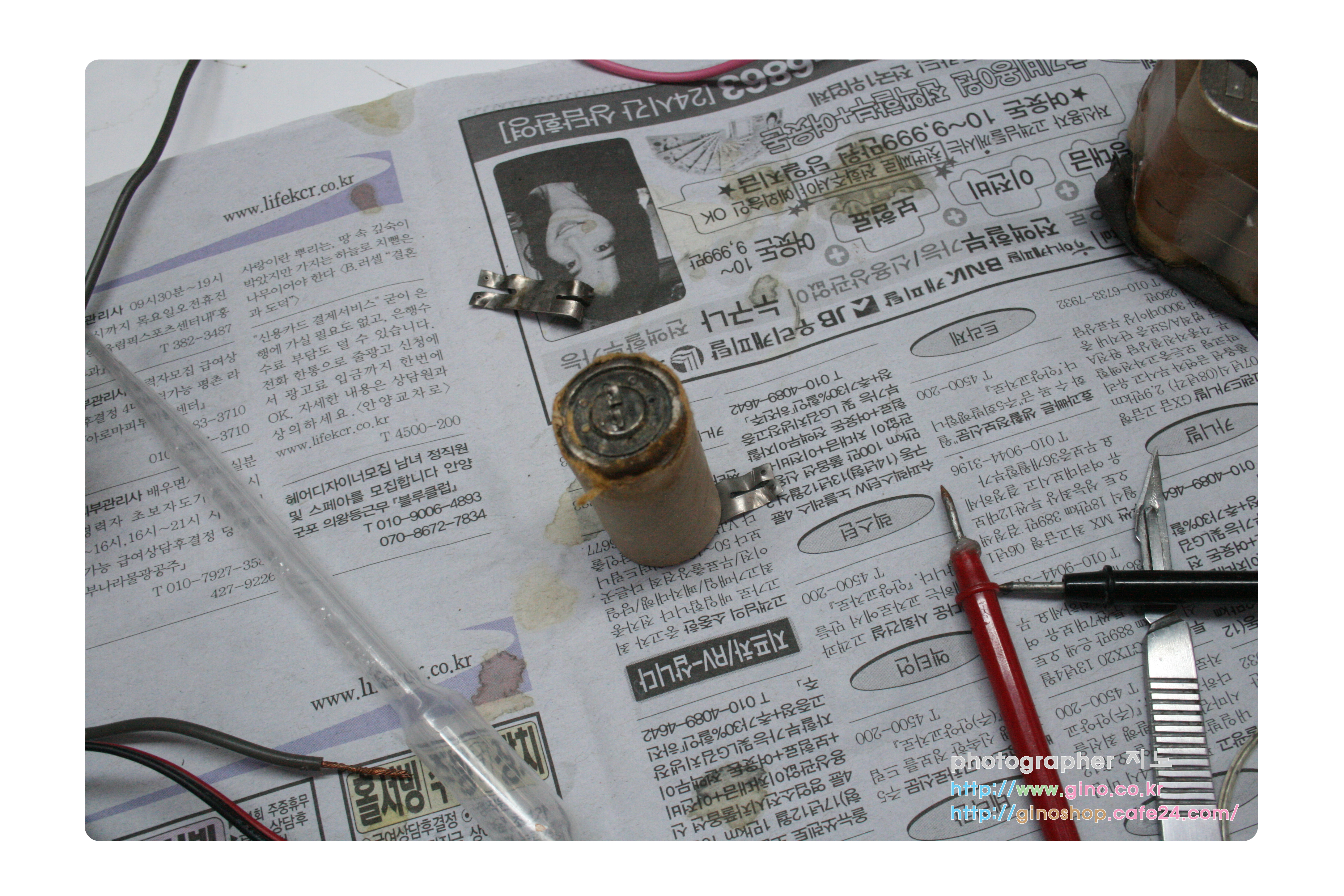 그리고 1개는 뚜따를 안하고 밑 바닥 부분을 드릴로 뚥어서 전해액을 집어 넣는 과정에서 드릴로 뚥으면서 +극성과 -극성이 붙어서 쇼트가 된듯합니다. 안에 내구 구조가 어떻게 되었는지 완전 분해해 본 사진도 올려봅니다.
