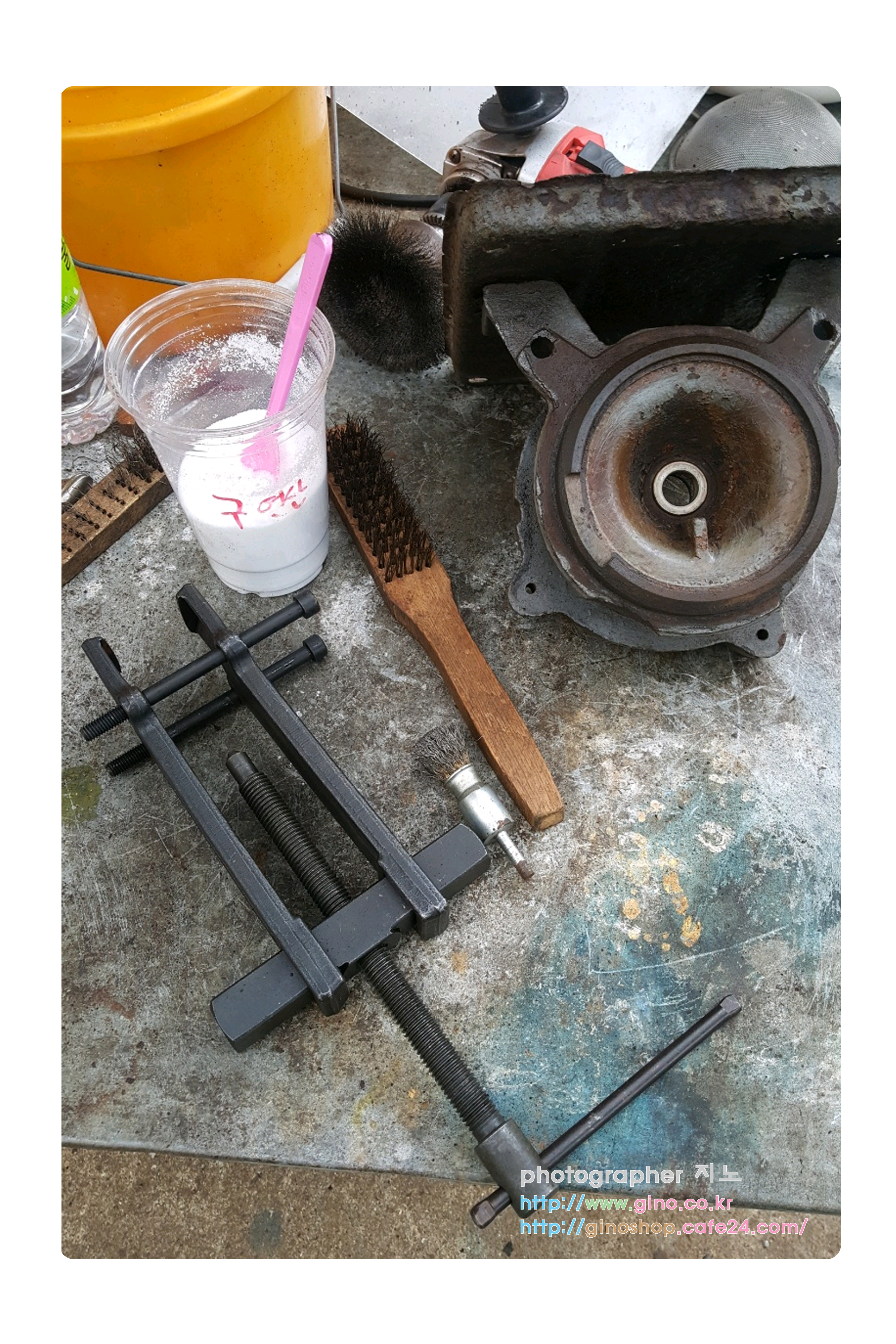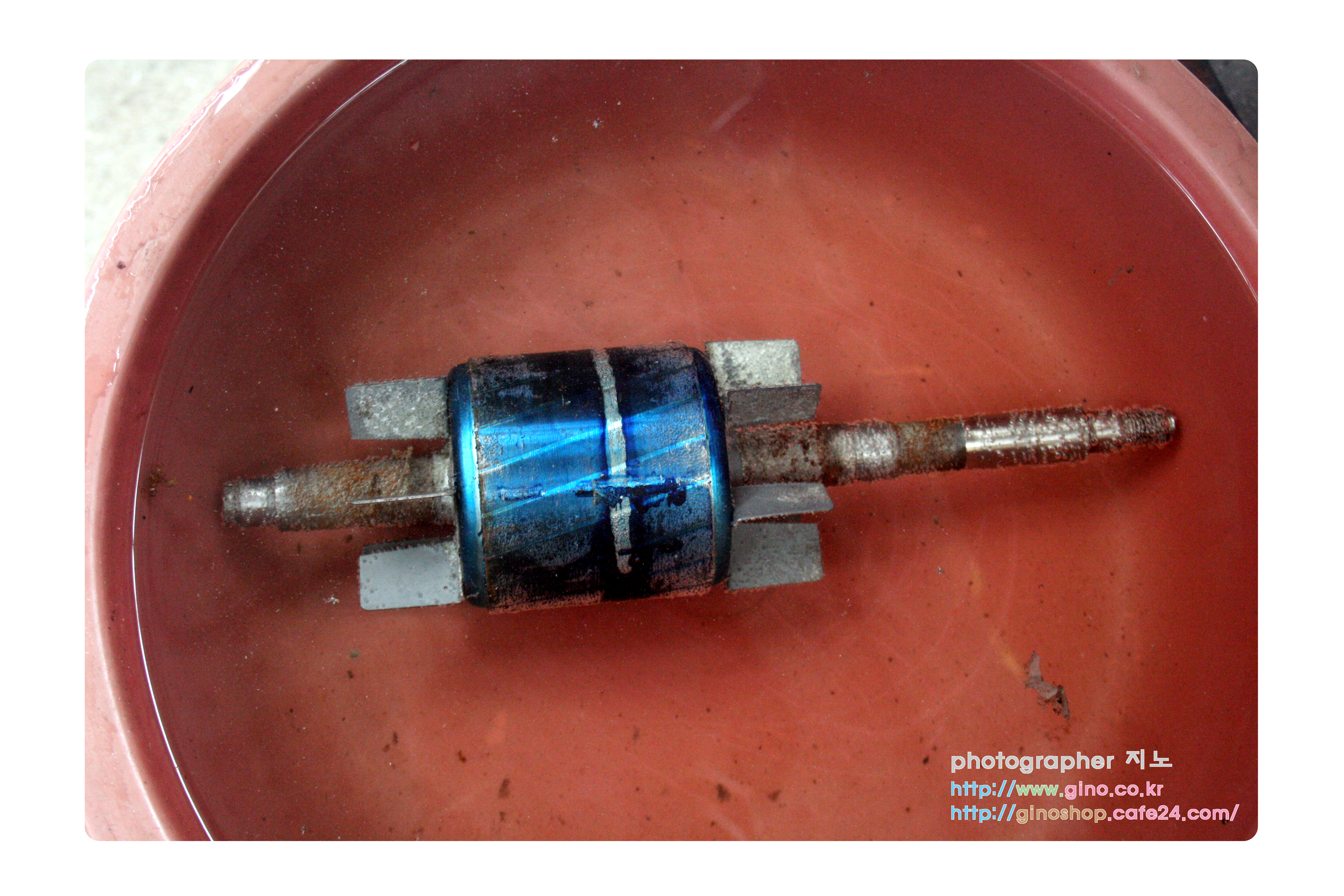 하루동안 구연산에 담궈둔 모터 축의 녹을 비교를 해보면 확연히 많이 제거가 된것이 확인이 되었습니다. 그렇다고 아직까지는 왁벽히 많이 제가가 되지 않아서 몇일더 담구어야 확실히 녹제거가 될것입니다. 그리고 나머지 양수기 녹쓴 부분도 물통에 담구어 같이 제거해 나갑니다. 녹의 부분 면적이 넓은 경우는 넉넉히 7일이상 담가두시면 될듯 예상을 해봅니다.