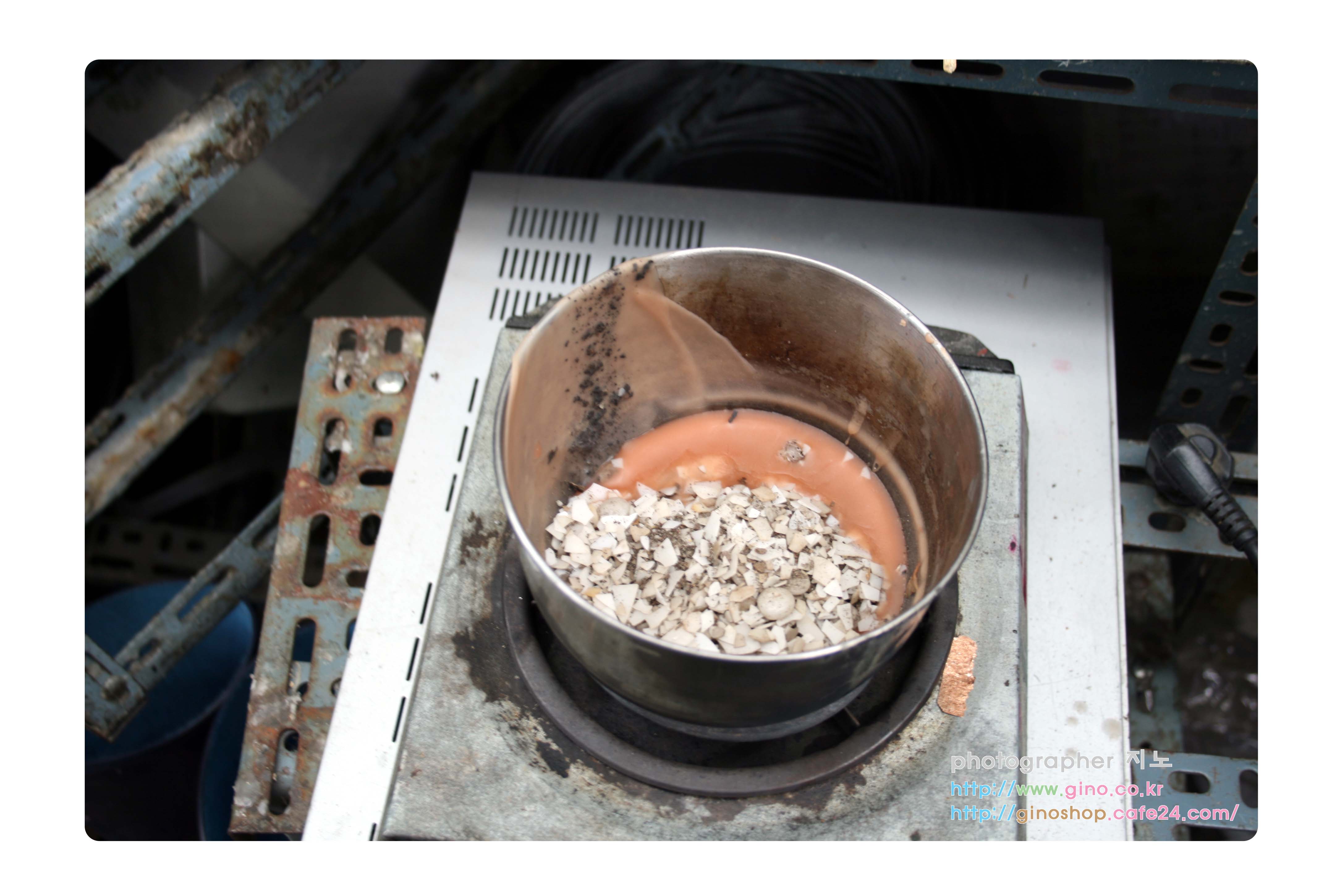 그 재료는 충격재를 왁스에 포함하여 만드는것인데, 비슷한 재료가 있어서 기존것과 혼합하여 녹이기 시작.