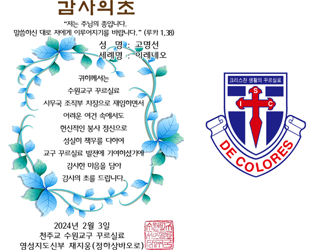 | 수원교구 꾸르실료 감사의초 확인 시안 (0) | 2024.01.16 |