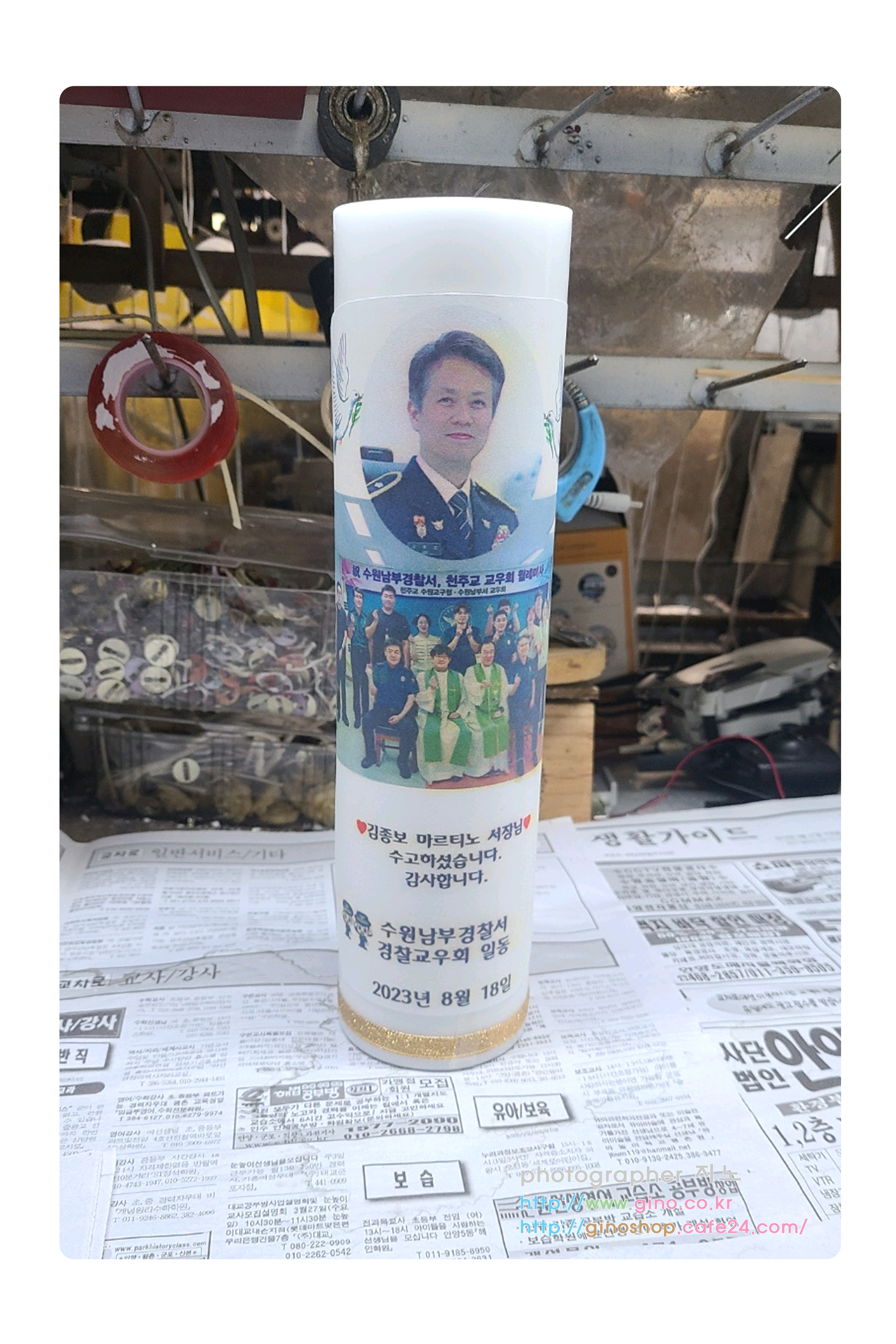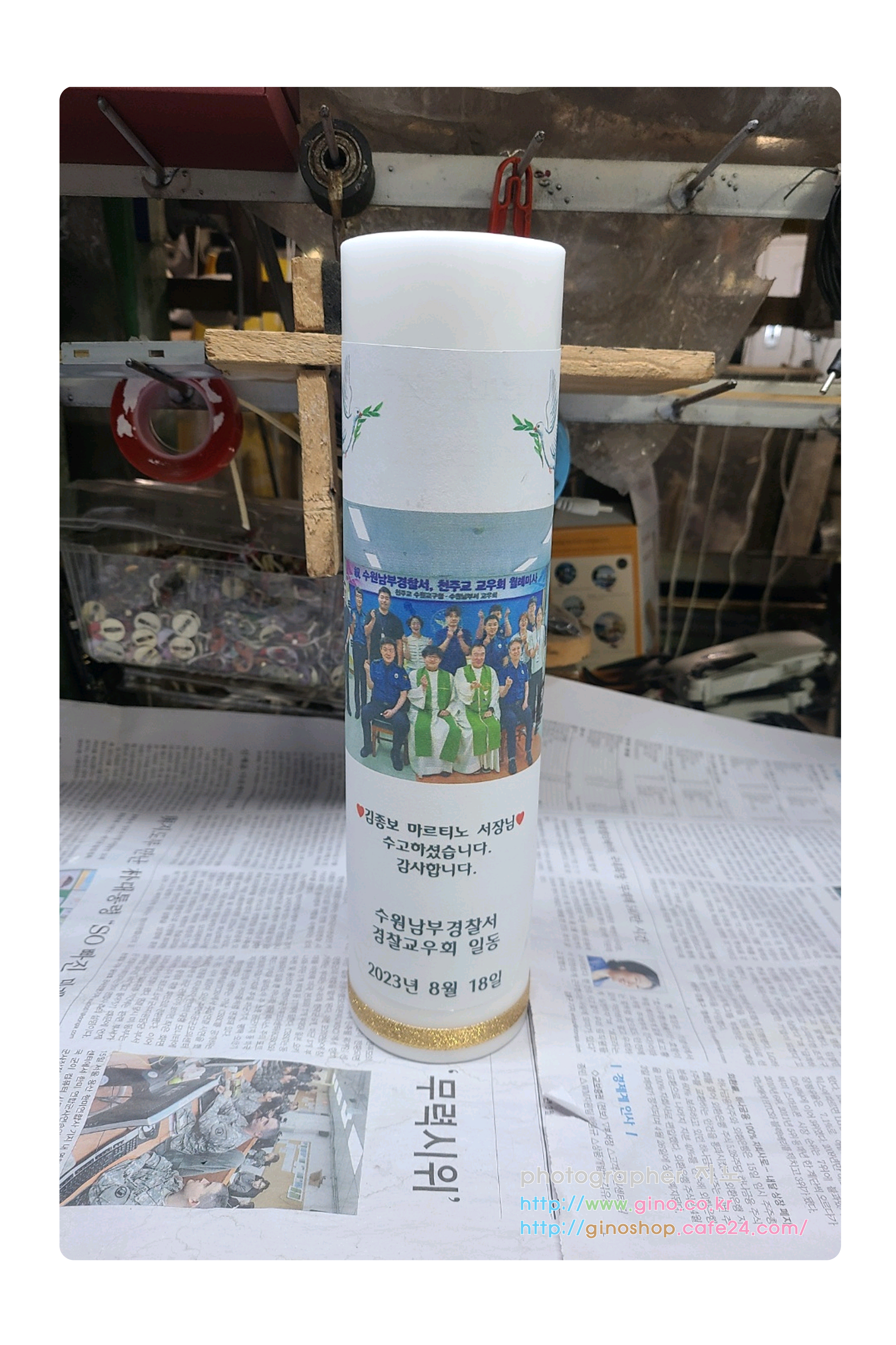 매교동성당에서 그동안 본당 성화와 발전에 공허하신 감사의 내용을 담아 주문 제작을 하신 감사초 양초 캔들 입니다.