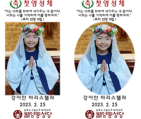 | 수원교구 흥덕성당 첫영성체 확인 시안 (0) | 2023.07.06 |