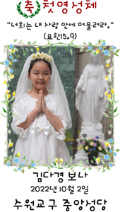 Posted at 2022. 10. 22. 17:33 | Posted in 첫영성체/첫영성체폼|