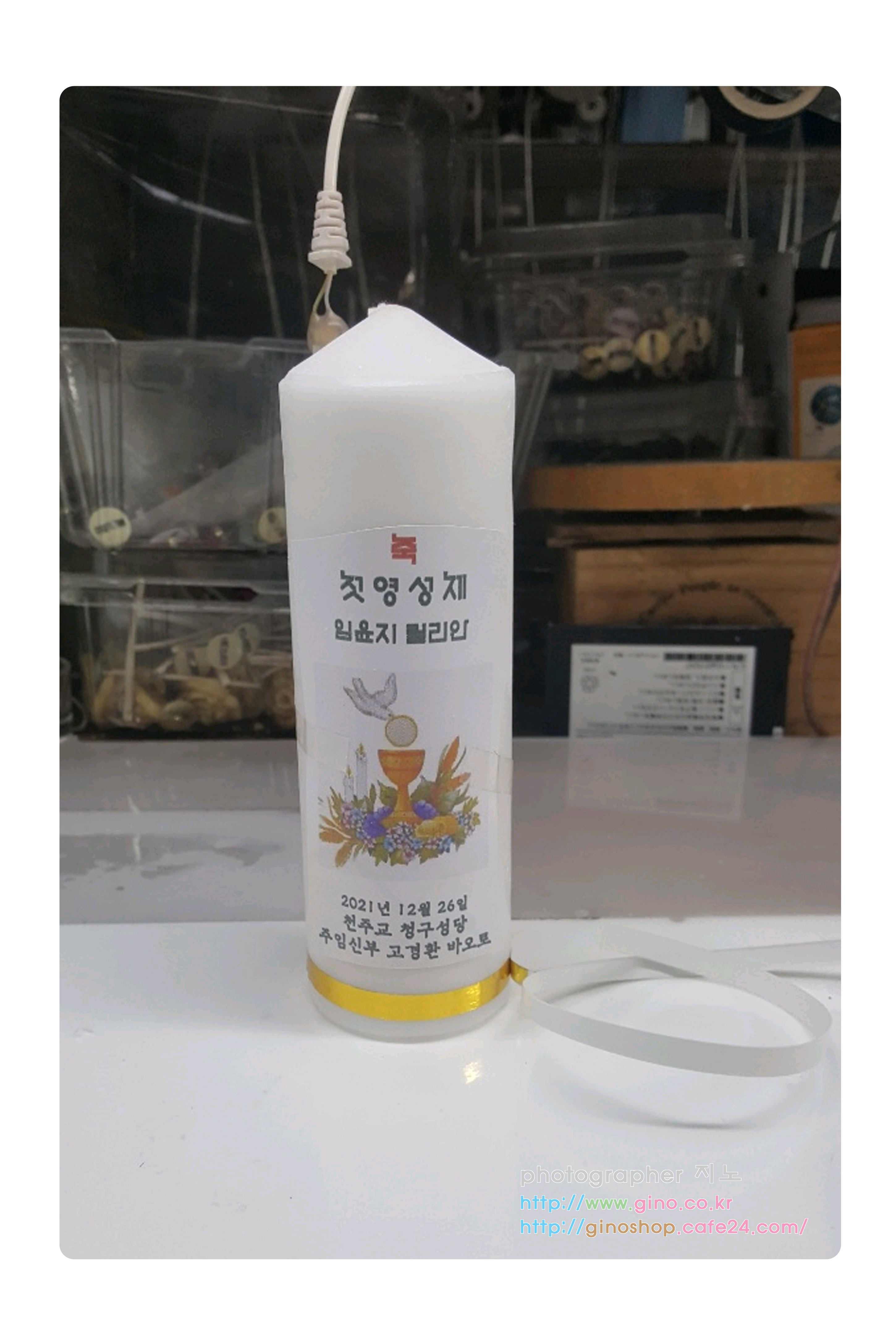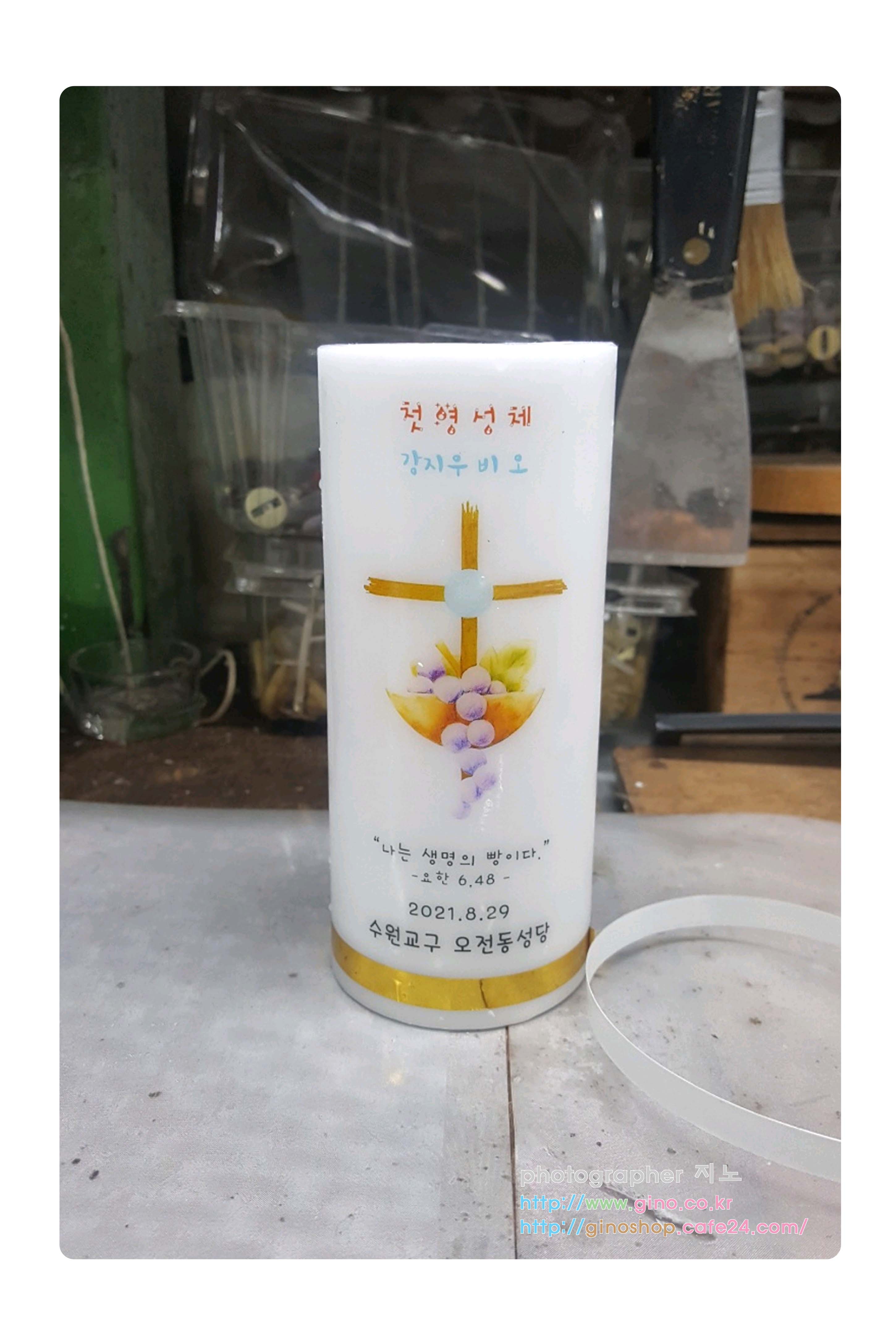 광교2동성당에서 첫영성체 행사때 사용하기 위해서 주문 제작을 하신 양초 캔들입니다.