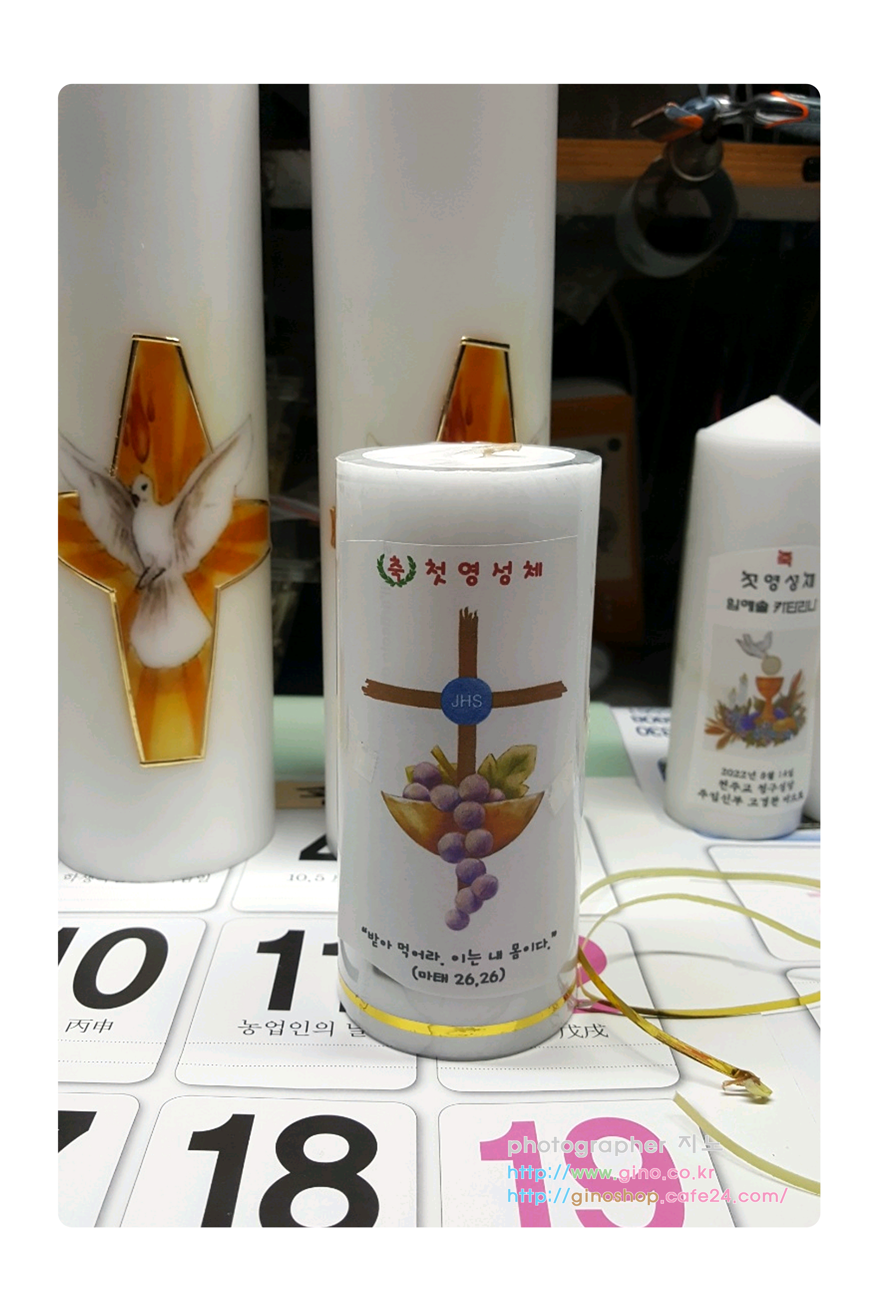 동판교성당에서 첫영성체 행사때에 사용하기 위해서 주문 제작을 하신 양초 캔들 입니다.