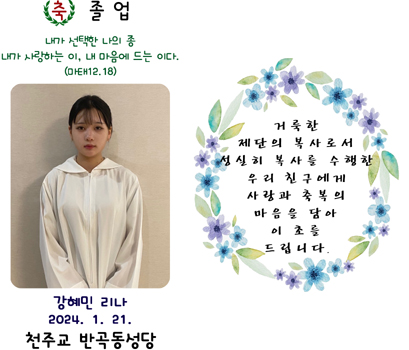 반곡동성당 졸업 확인 시안반곡동성당 졸업 확인 시안