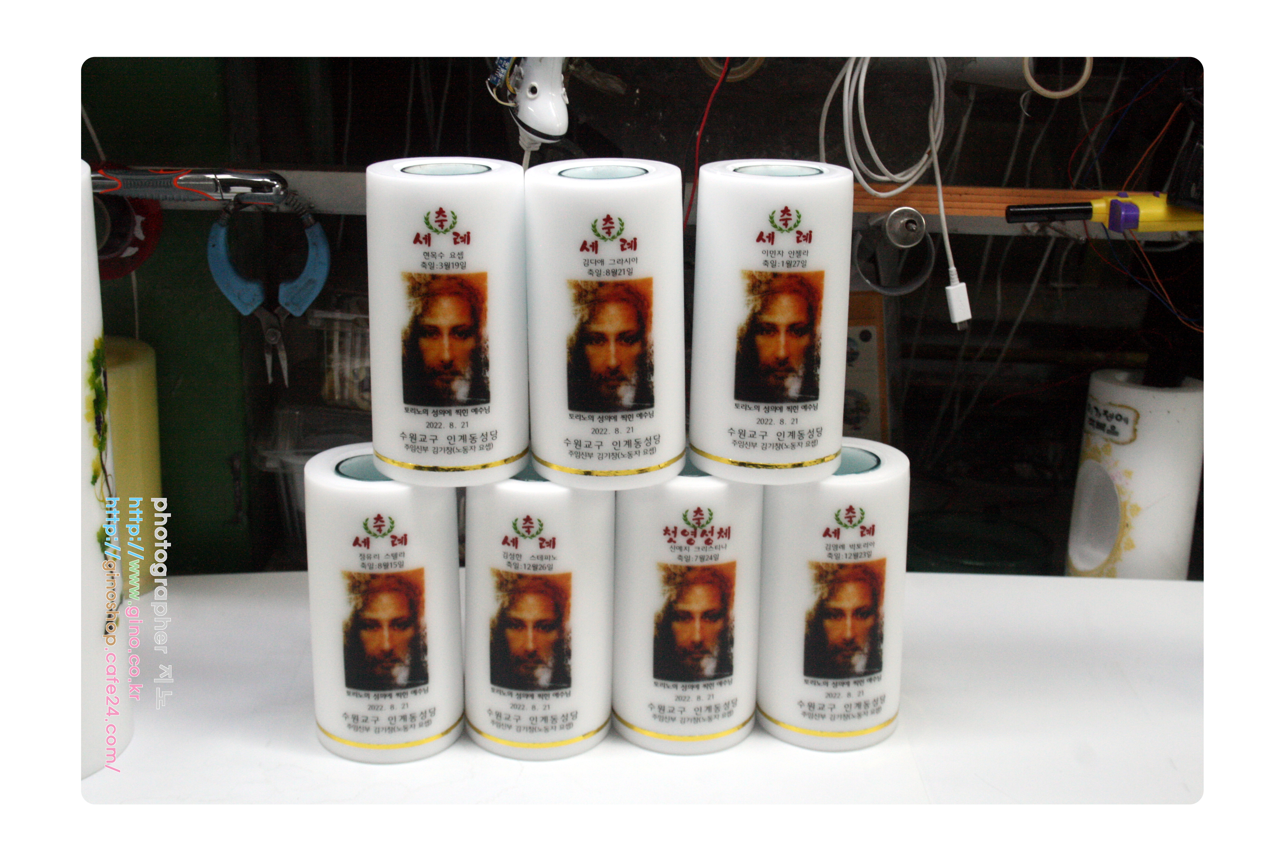 인계동성당에서 축세례 행사때에 사용하기 위해서 주문 제작을 하신 양초 캔들 입니다.