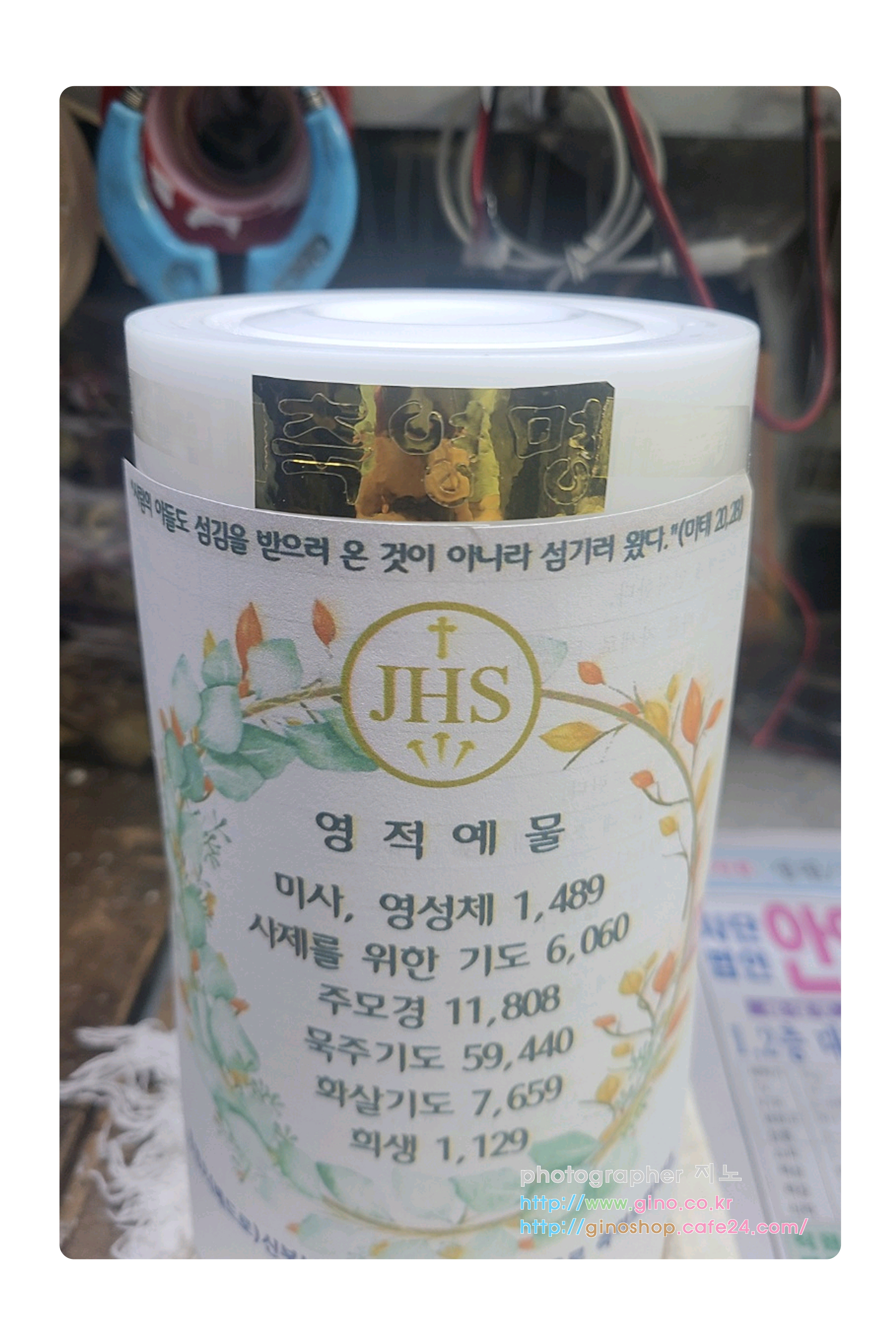 미      사        :     457대 선      행     :     386회 9 일 기 도     :        1회 성  모  송     :     435회 주  모  경     :   2,845회 미 사 참 례    :     420회 묵 주 기 도    :   6,800단 화 살 기 도    :     575회 사제들을 위한기도 :   760회
