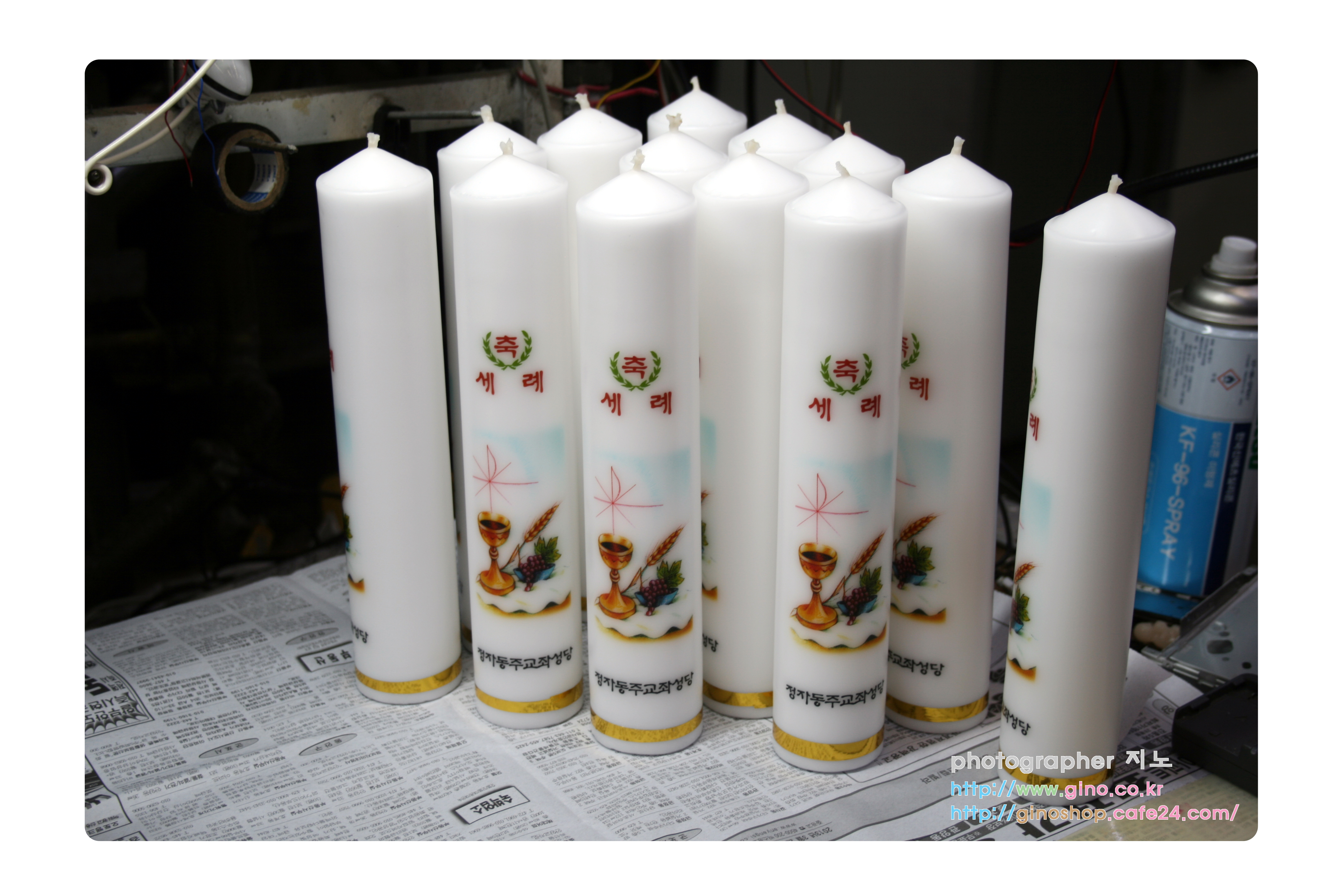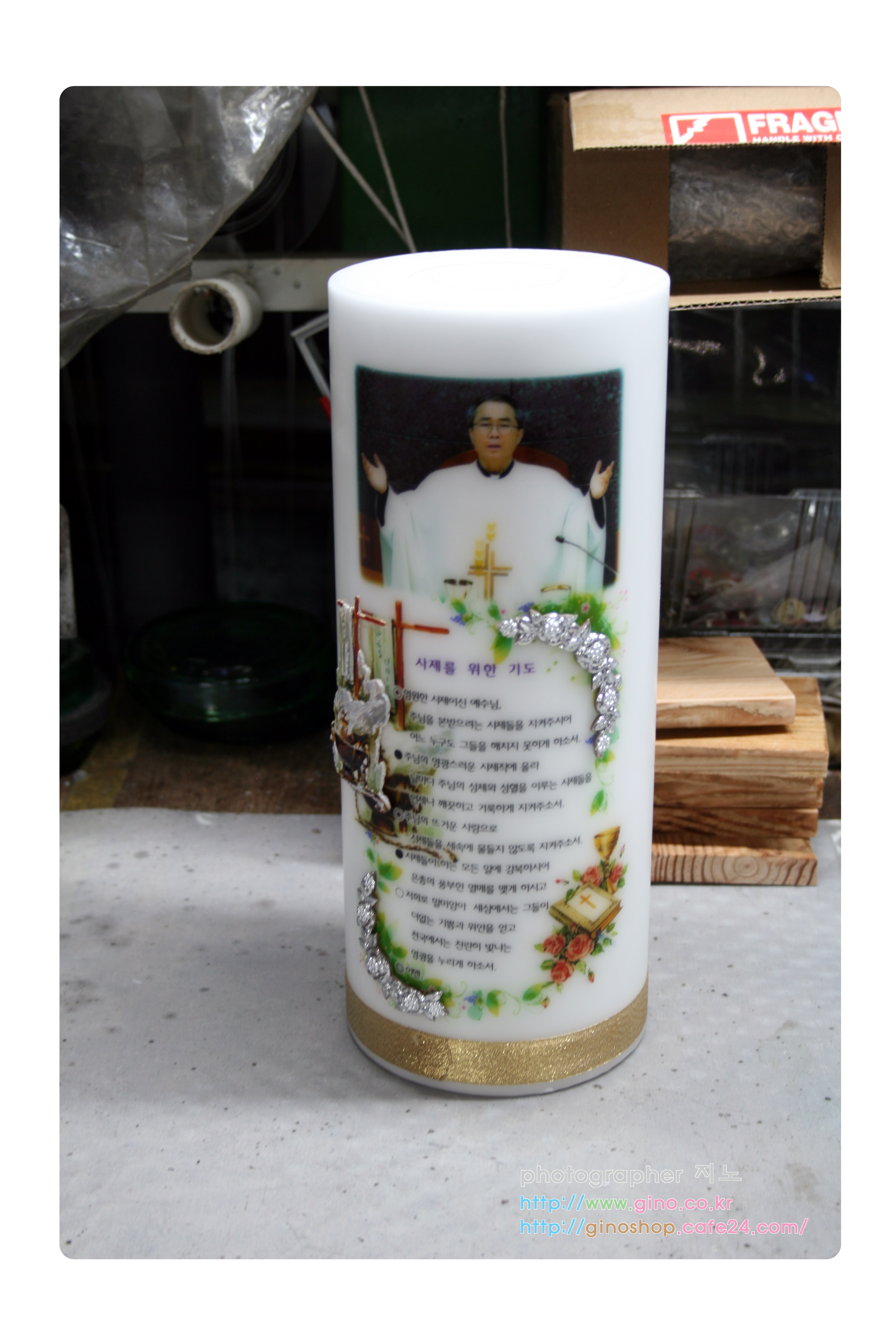 동천성바오로성당에서 축견진 행사때에 사용하기 위해서 주문 제작을 하신 양초 캔들 입니다.