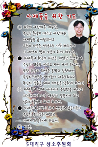 사제를 위한 기도문의 배치를 하고 바탕으로 신부님 상본을 바탕으로 잡아 보았습니다. 그리고 신부님 사진을 우측 상단의 여백 부분에 배치를 하고 사제를 위한 기도문 하단의 여백에 서품식 내용을 삽일을 하고 제일 하단에 5대리구 성소후원회를 배치를 하였습니다.