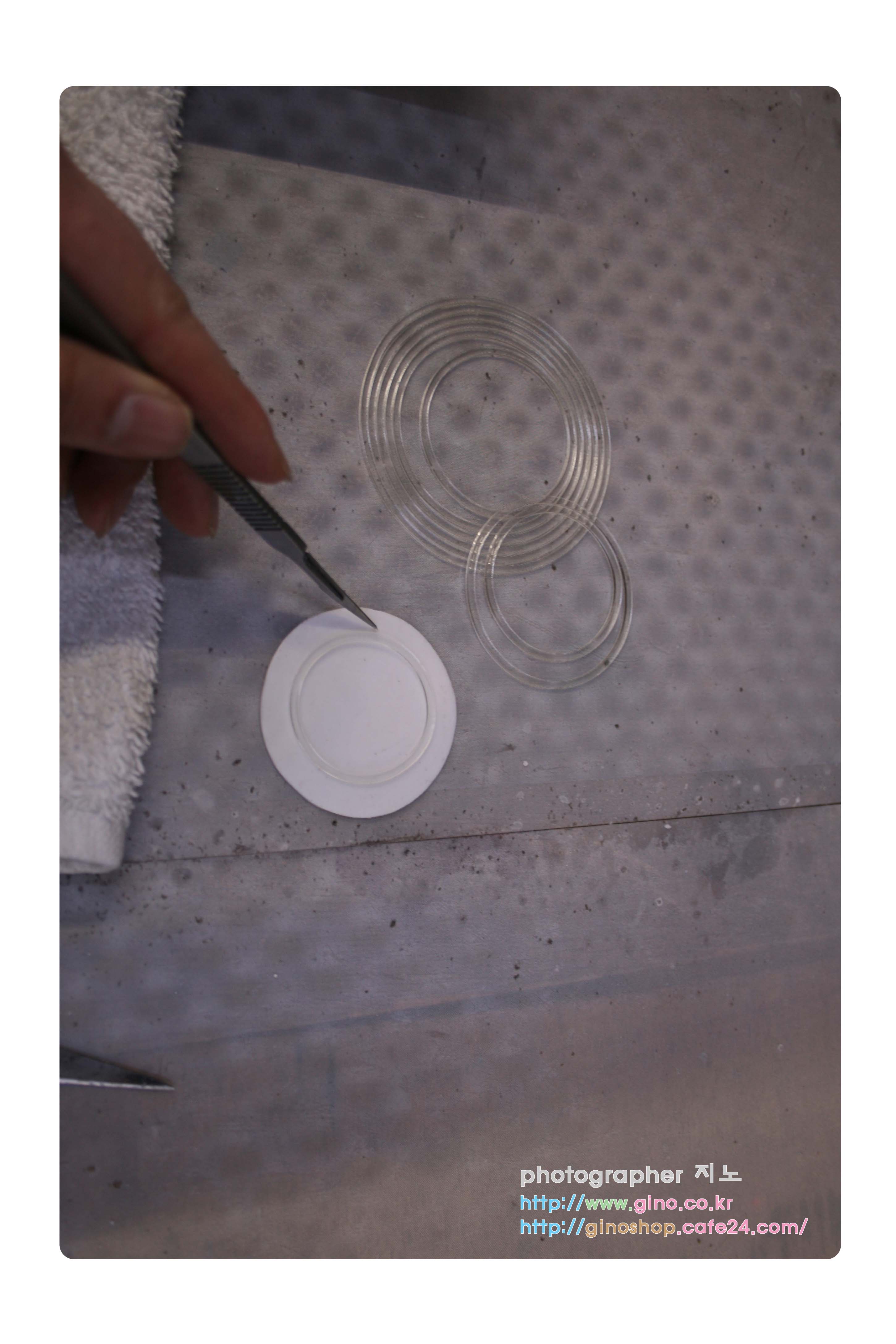 적색 캔들 왁스 시트에 도안과 동일하게 표시후 십자가를 따 줍니다.