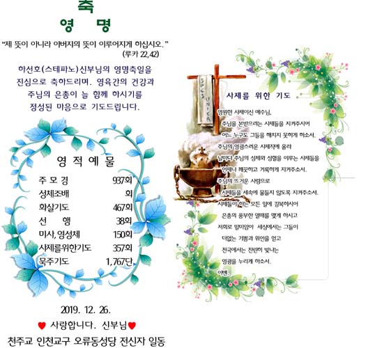 - 천주교 인천교구 오류동성당 영명축일 캔들 초안 2019.12.17