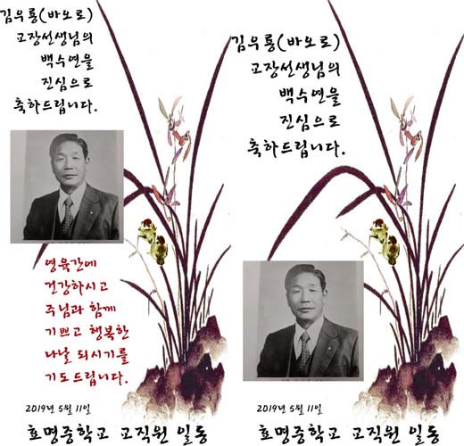 김우룡(바오로) 교장선생님의 백수연을 진심으로 축하드립니다.