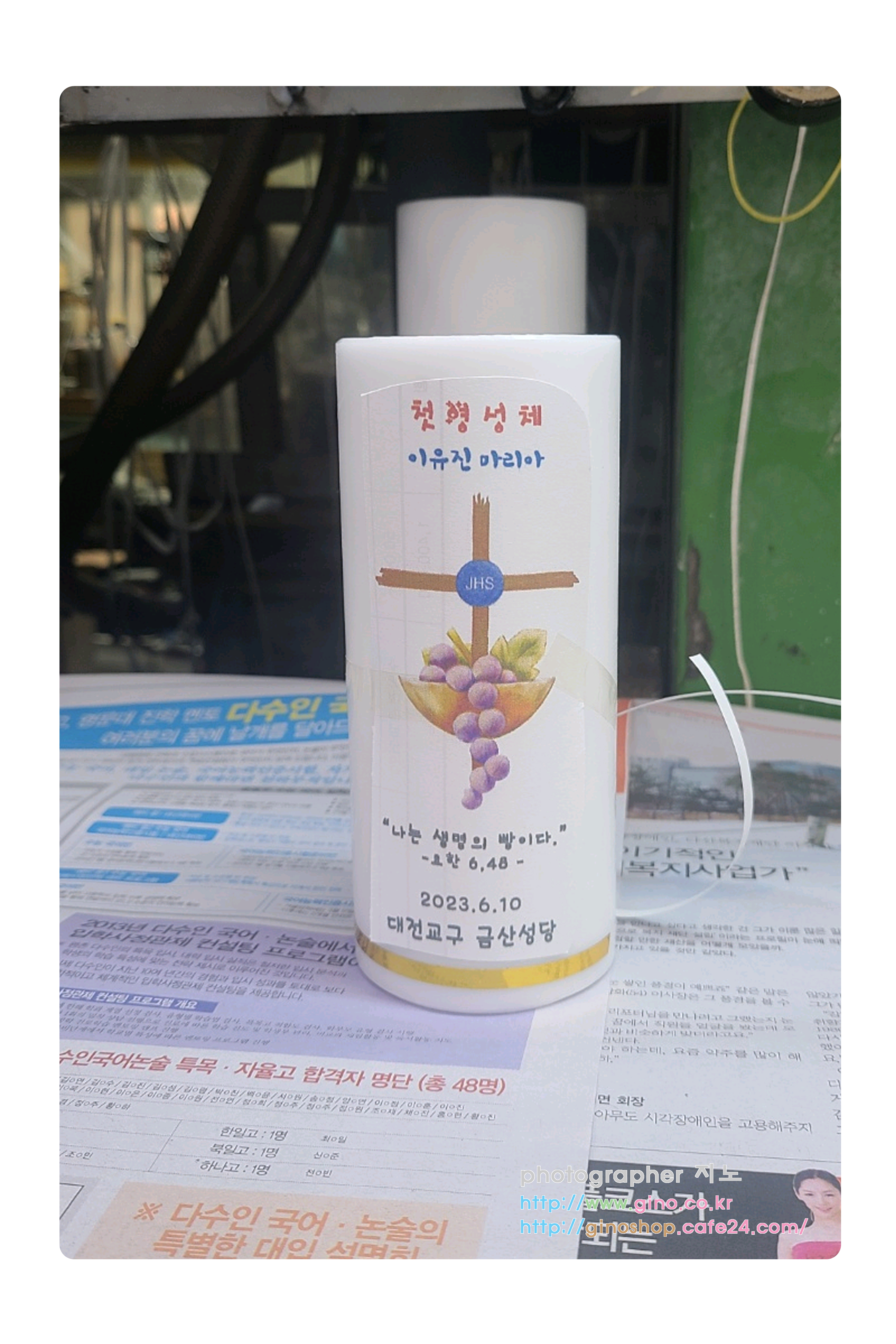 양지성당에서 첫영성체 행사때에 사용하기 위해서 주문 제작을 하신 양초 캔들 입니다.