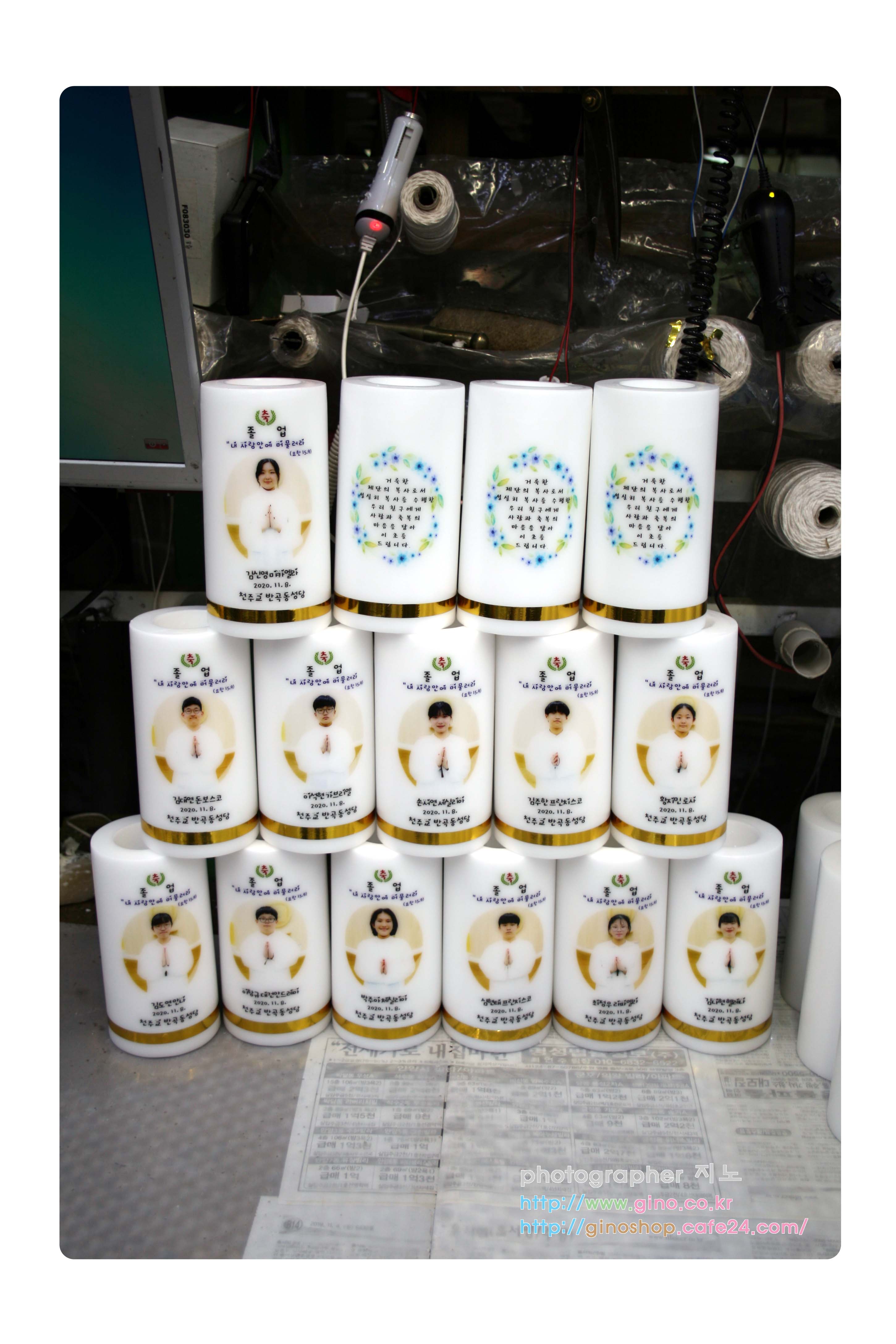 재속프란치스코 여주 프란치스코형제회에서 축은경 맞으시는 분들의 개별 이름을 넣어 주문 제작을 하신 양초 캔들 입니다.