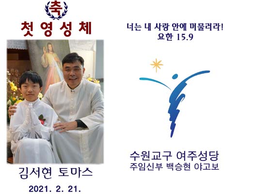 | 수원교구 여주성당 첫영성체 확인 시안 (0) | 2021.02.04 |